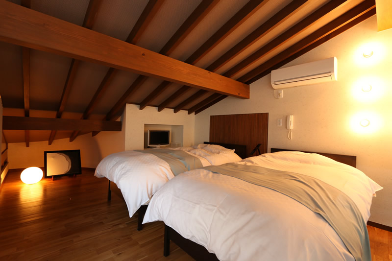 1階:ダイニングとリビングスペース、バス、トイレ/2階:ベッドスペース